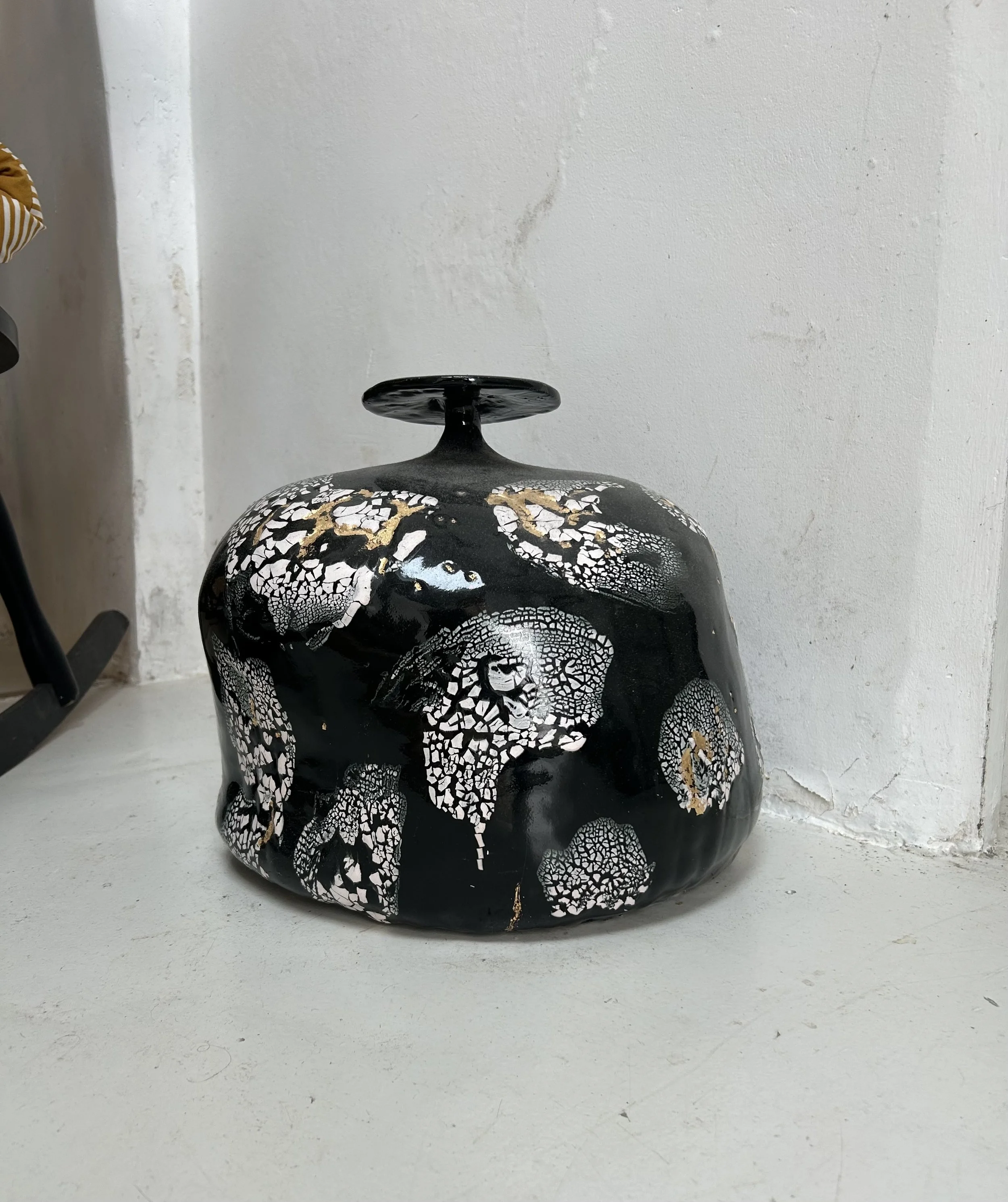 KUROGAMI, les cheveux noirs. sculpture. Pieces réalisées en céramique , grès émaillé craquelé et feuilles d’or.